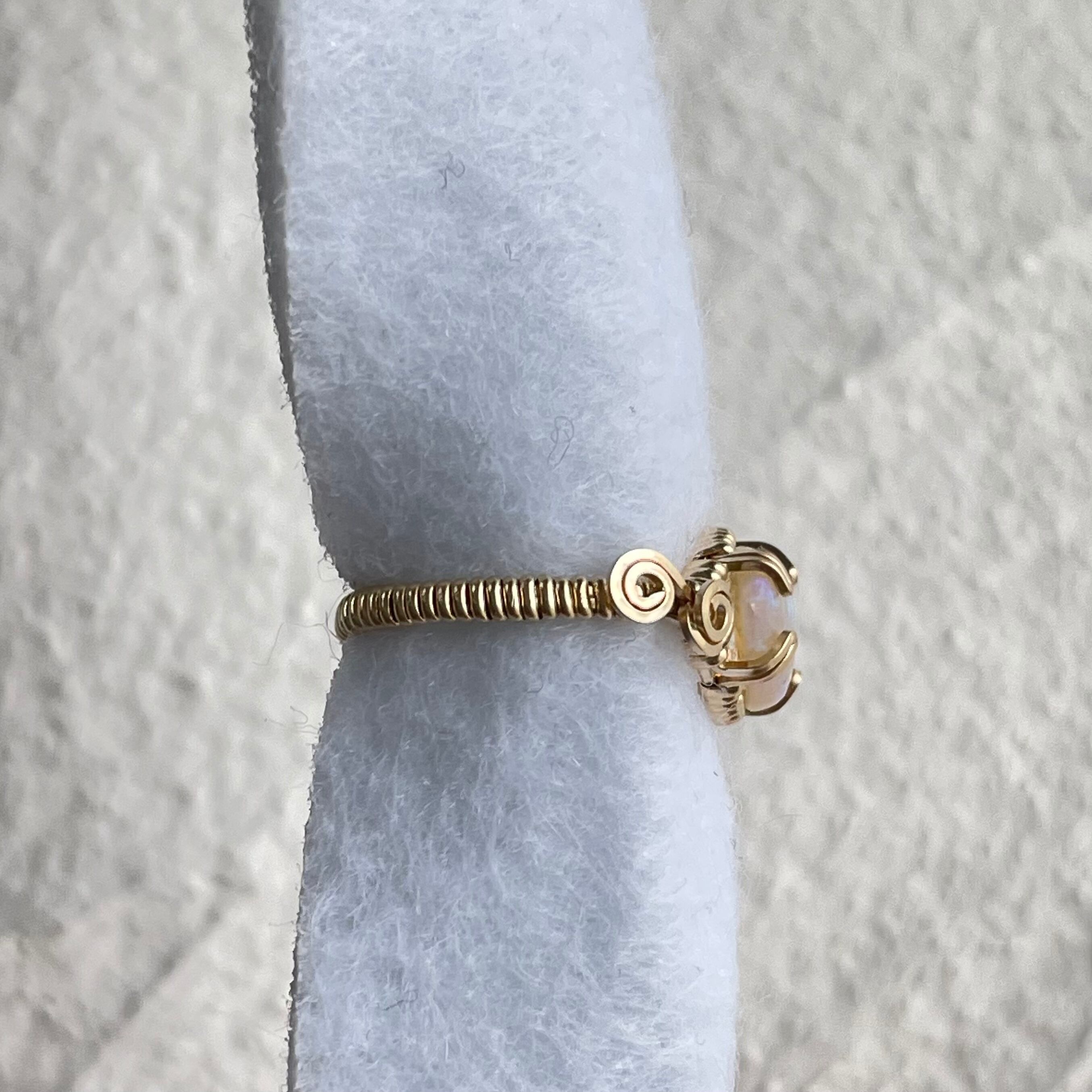 優しい遊色が暖かな気持ちになるオパールのリングです。
